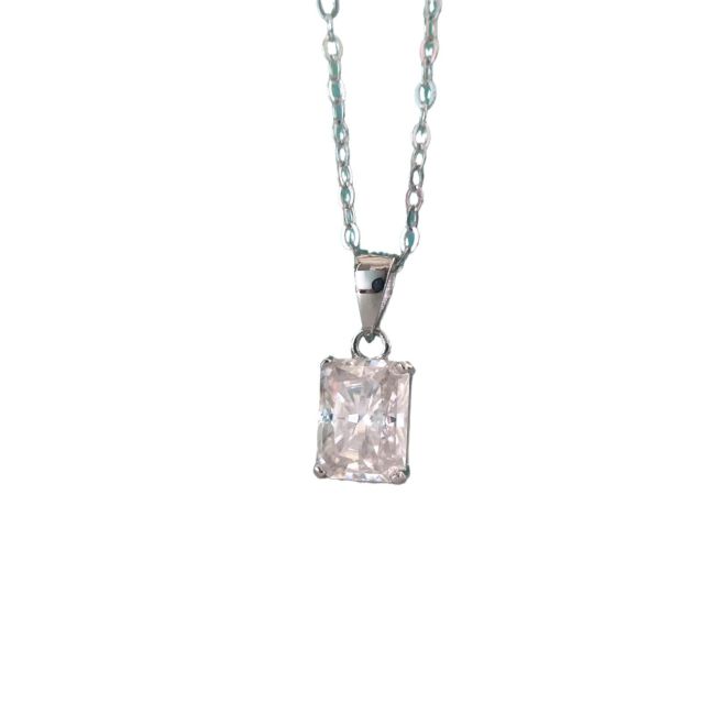 Necklace Minimalist Rectangular Moissanite Pendant S925 Sterling Silver Collarbone Chain