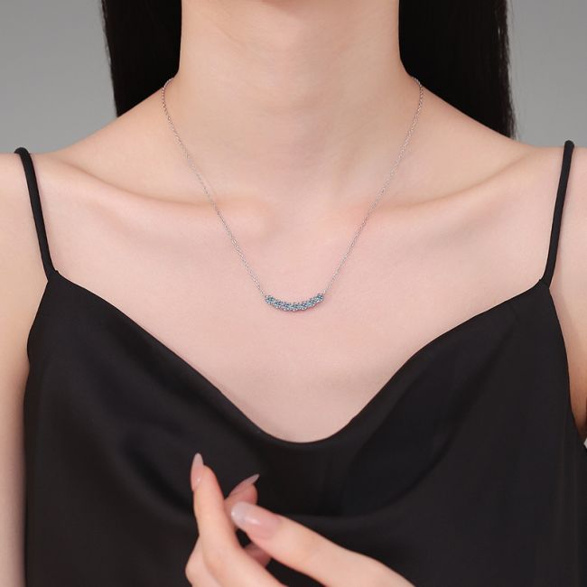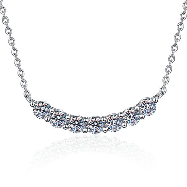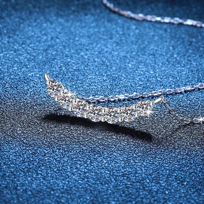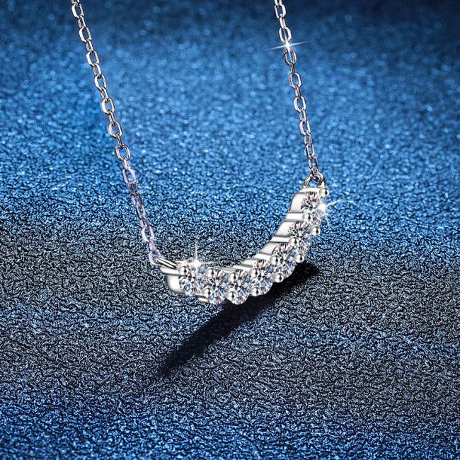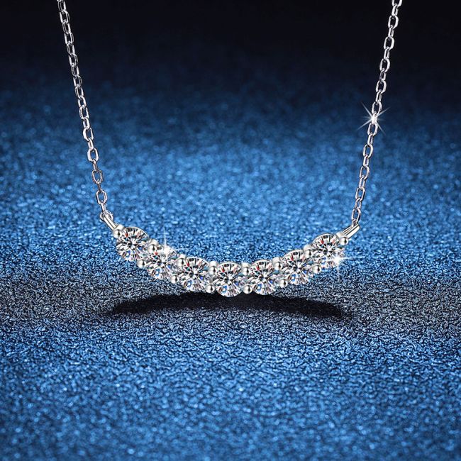 Necklace Minimalist Smile Curve Seven Stone Moissanite Pendant Sterling Silver Chain
