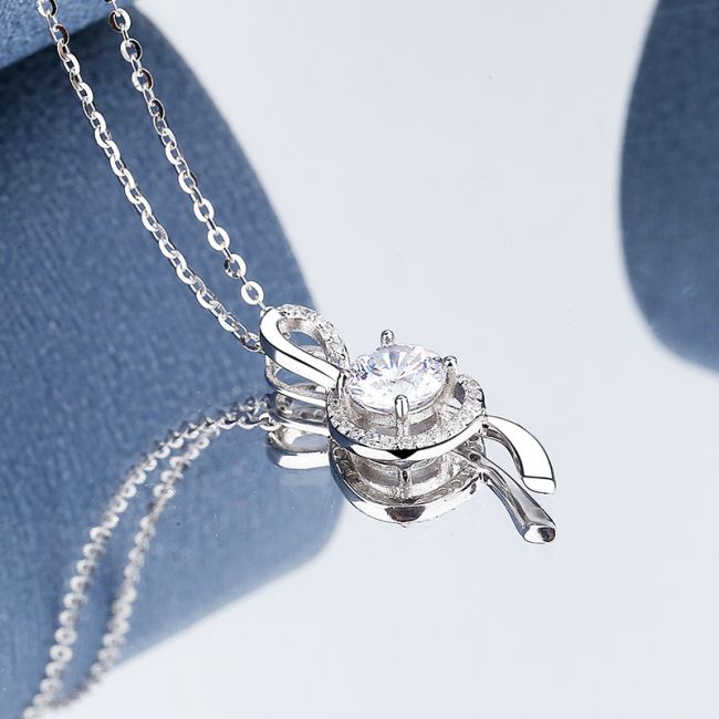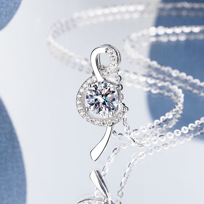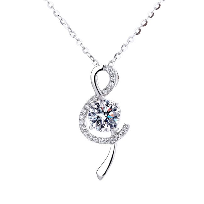 Necklace Musical Note Pendant 1 Carat Moissanite S925 Sterling Silver Four Prong Setting Platinum Plated