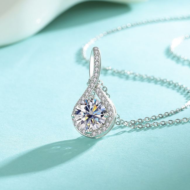 Necklace S925 Sterling Silver Teardrop Moissanite Pendant Elegant Collarbone Chain
