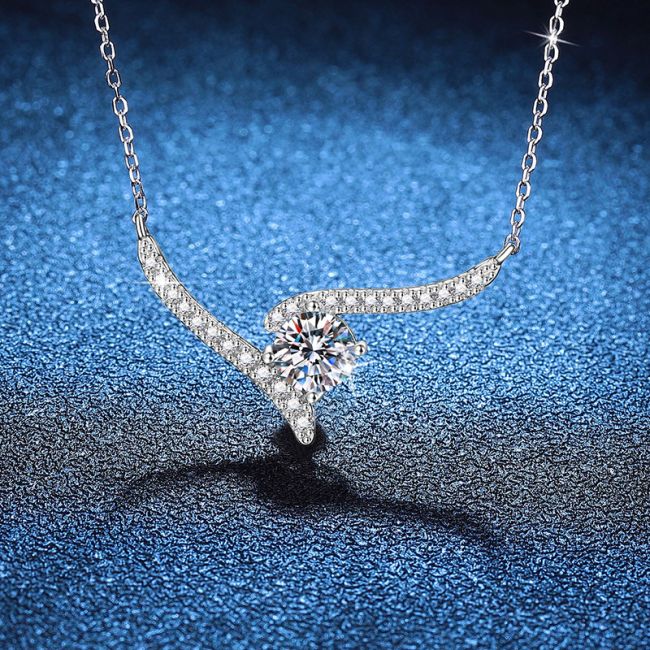 Necklace Sterling Silver Angel Wings Moissanite Pendant Delicate Collarbone Chain