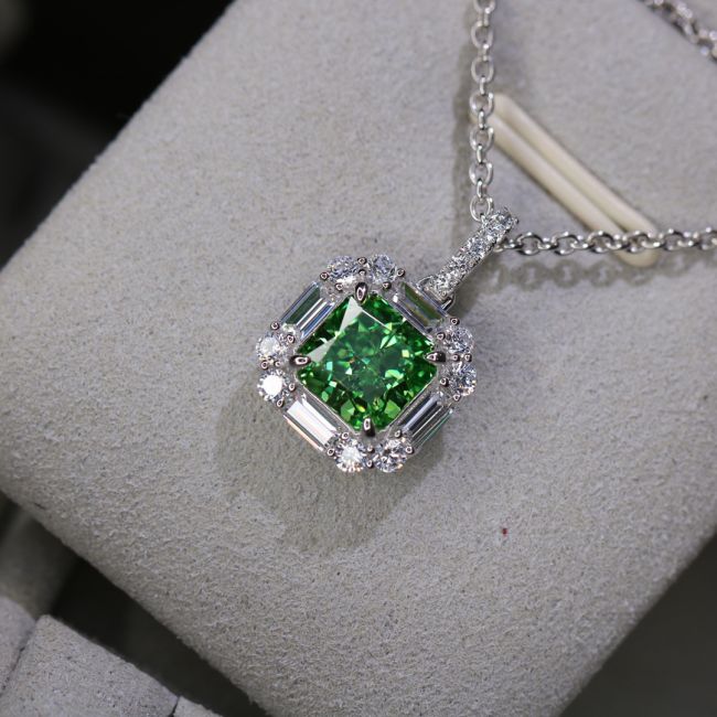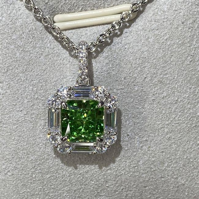 Necklace Sterling Silver Apple Green Ice Flower Cut Gemstone Pendant Fresh Elegant Style
