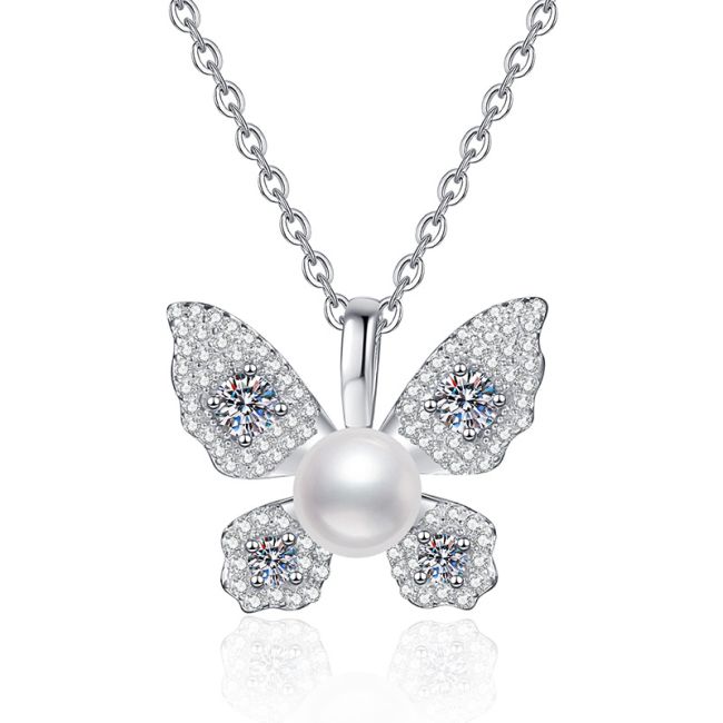 - Design: Elegant butterfly-shaped pendant with sparkling wings and pearl center