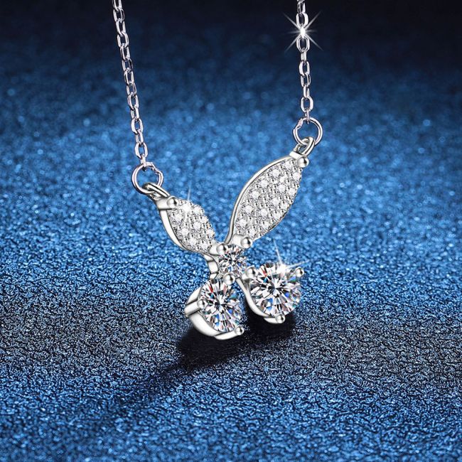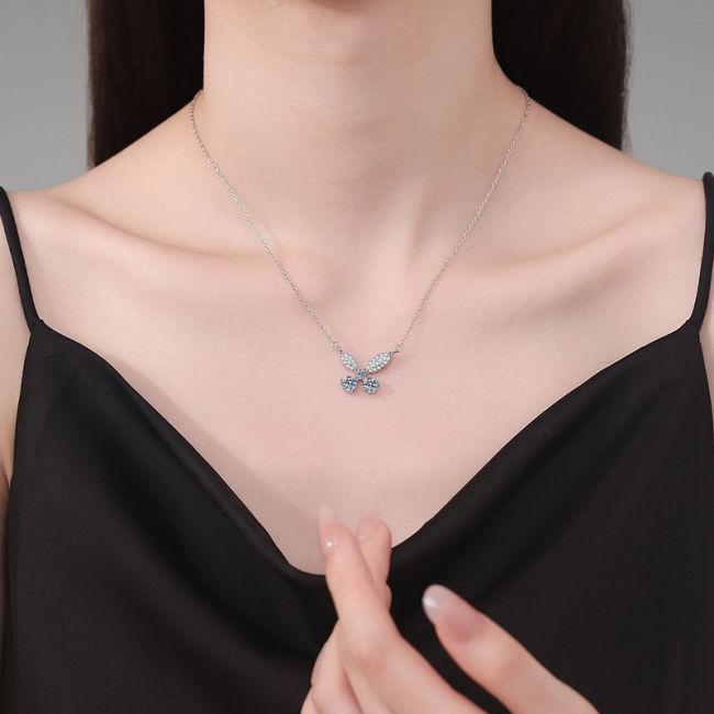 Necklace Sterling Silver Butterfly Pendant with Moissanite Stones Elegant Chain Jewelry