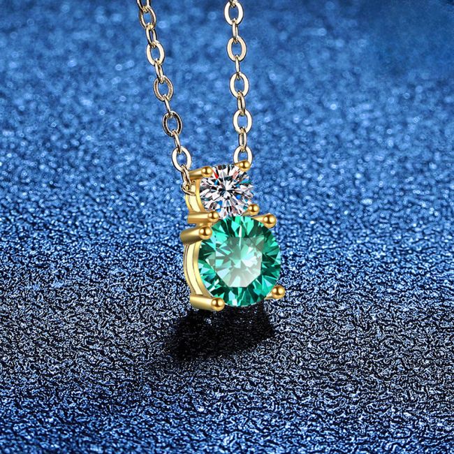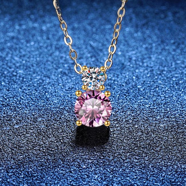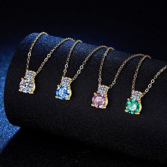 Necklace Sterling Silver Colorful Moissanite Pendant Delicate Collarbone Chain with Double Stone Design
