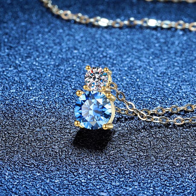 Necklace Sterling Silver Colorful Moissanite Pendant Delicate Collarbone Chain with Double Stone Design