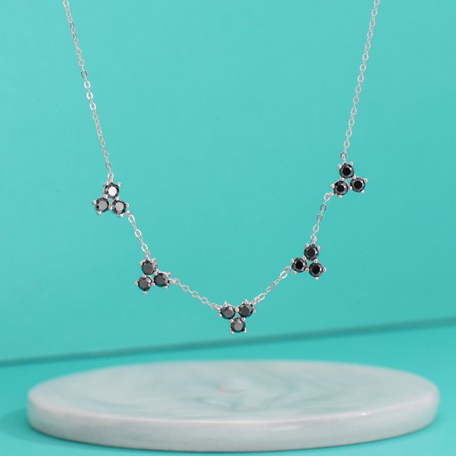 Necklace 925 Sterling Silver Four Leaf Clover Moissanite Collarbone Chain Delicate Pendant