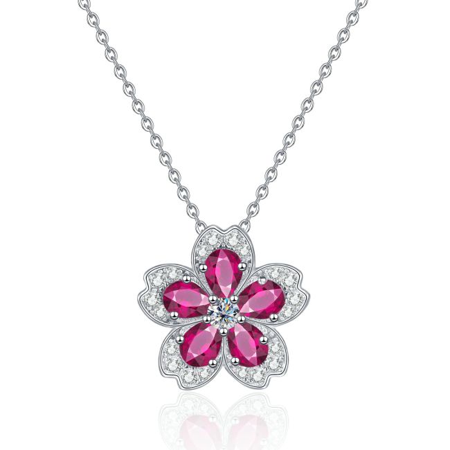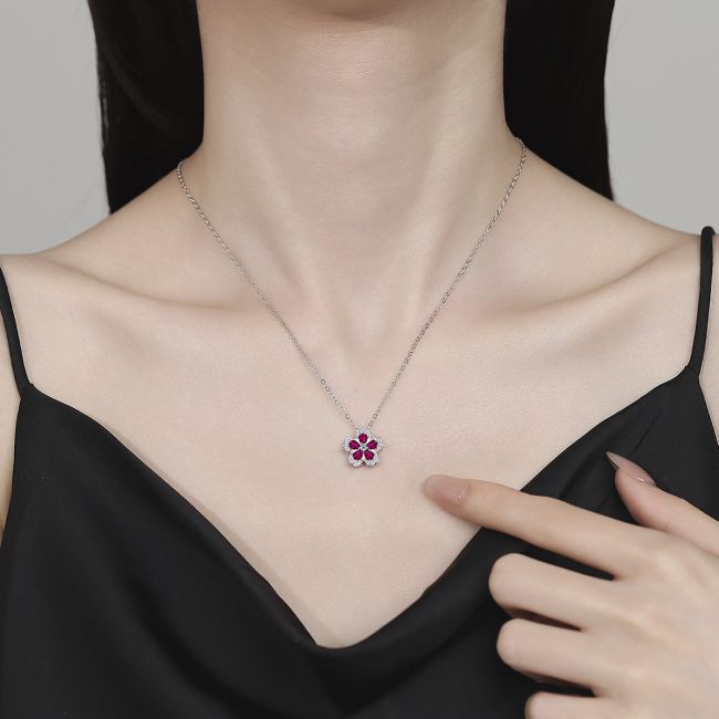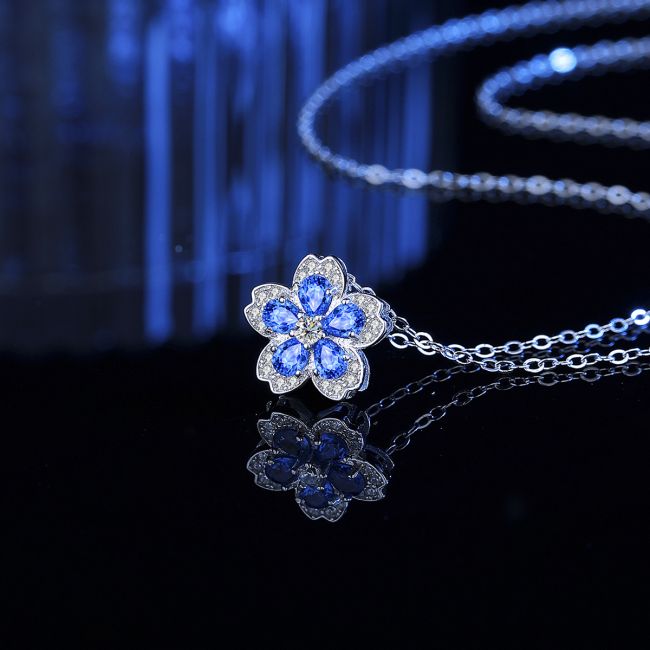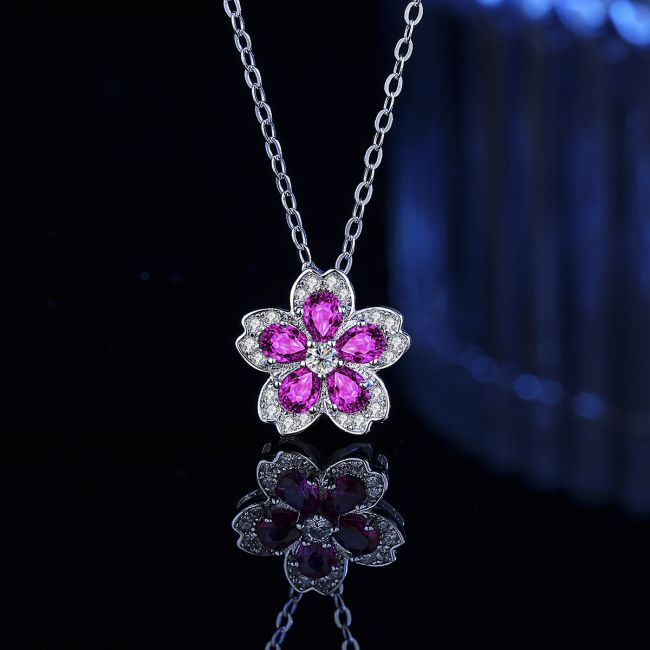 Necklace Sterling Silver Colorful Zirconia Flower Collarbone Chain Delicate Pendant