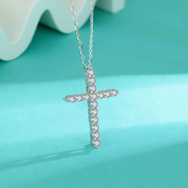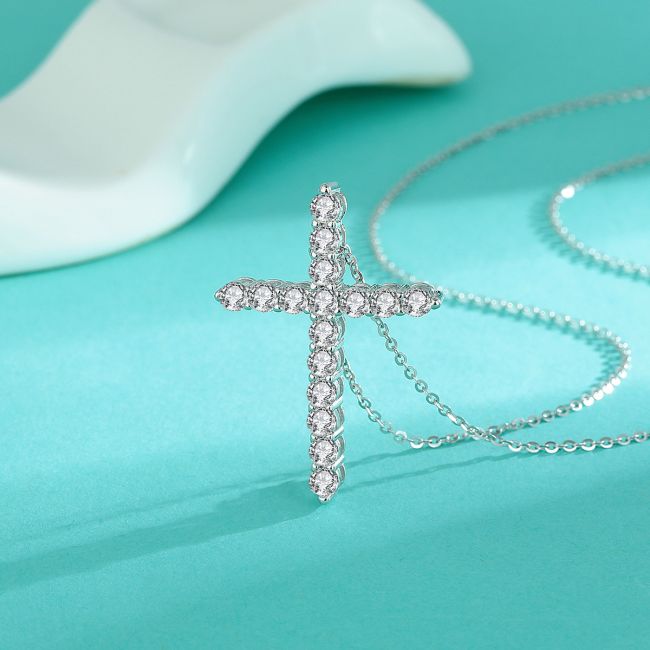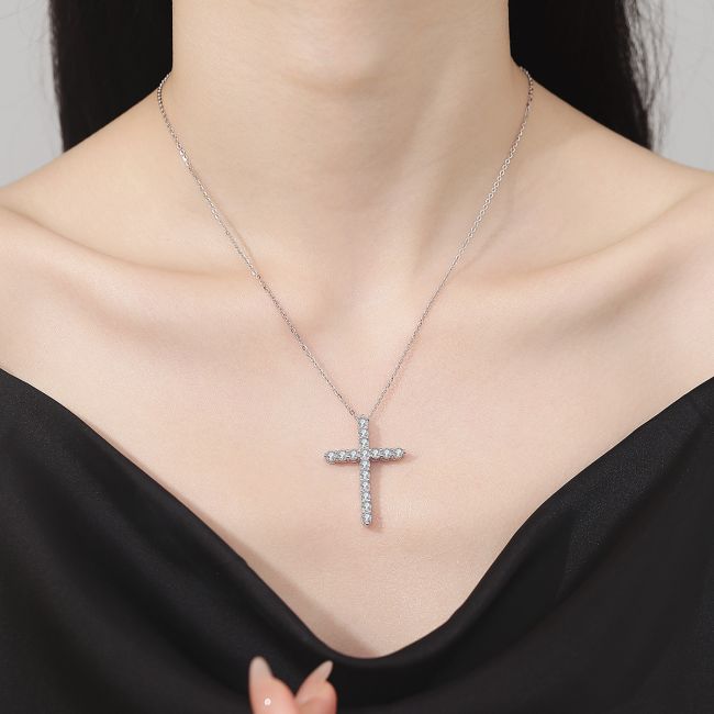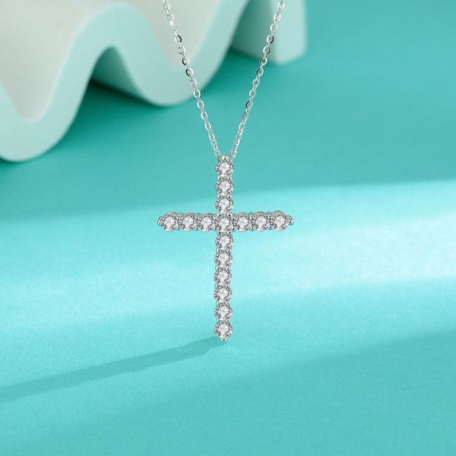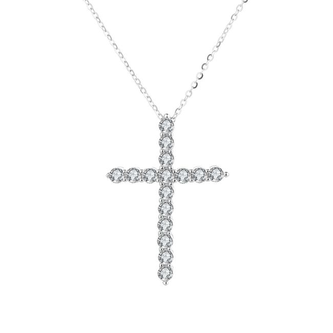 Necklace Sterling Silver Cross Pendant with Moissanite Stones Versatile Fashion Jewelry
