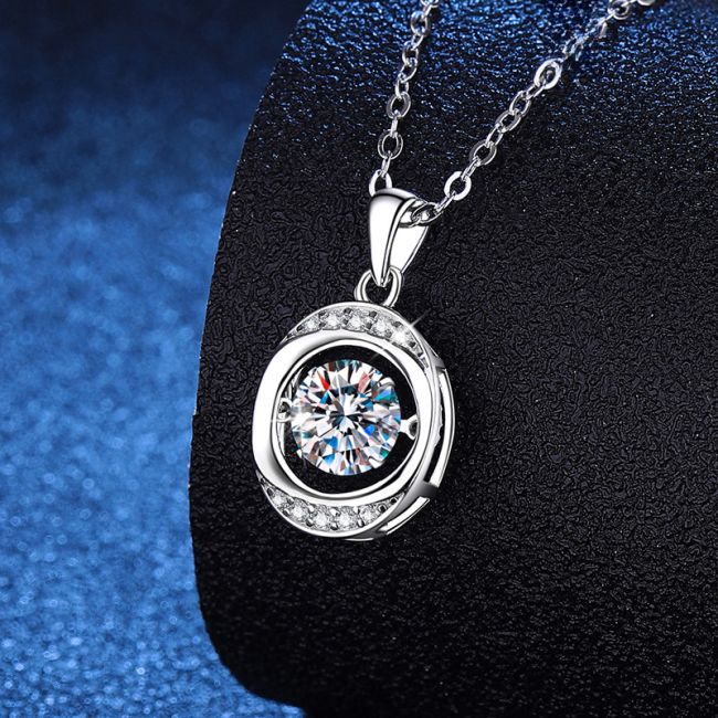 - Design: Dancing heart pendant with dynamic movement design that allows the center stone to shimmer with every motion