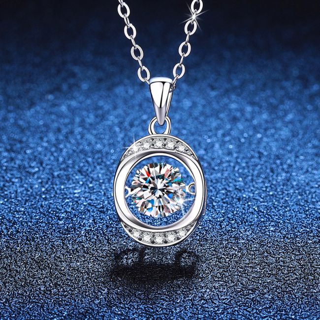 - Design: Dancing heart pendant with dynamic movement design that allows the center stone to shimmer with every motion