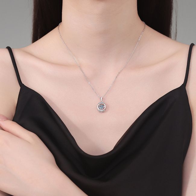 Necklace Sterling Silver Moissanite Pendant with Brilliant Round Cut Halo Design