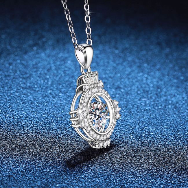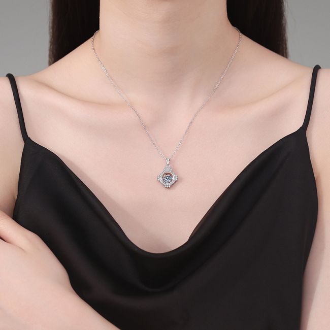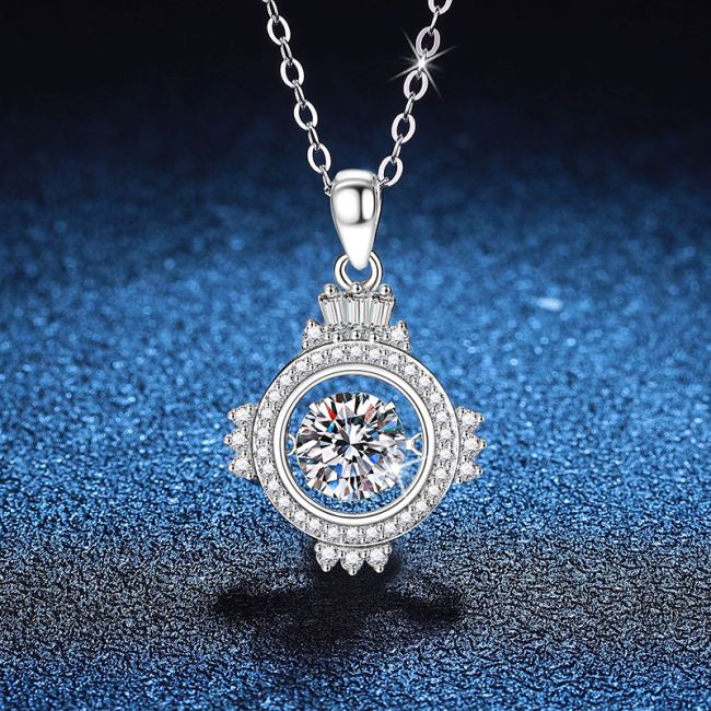 Necklace Sterling Silver Dancing Stone Pendant with 1 Carat Moissanite Round Halo Design