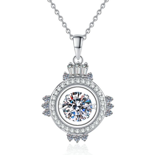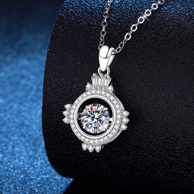 Necklace Sterling Silver Dancing Stone Pendant with 1 Carat Moissanite Round Halo Design