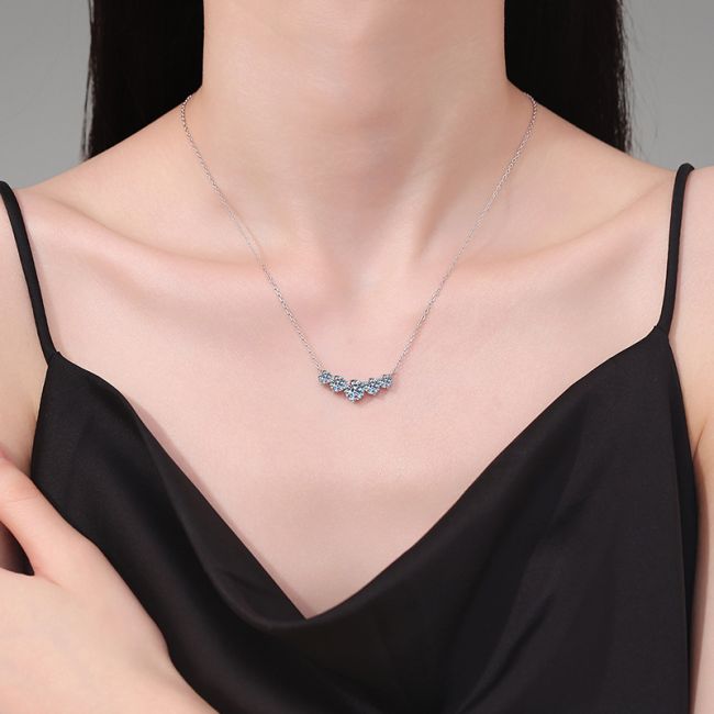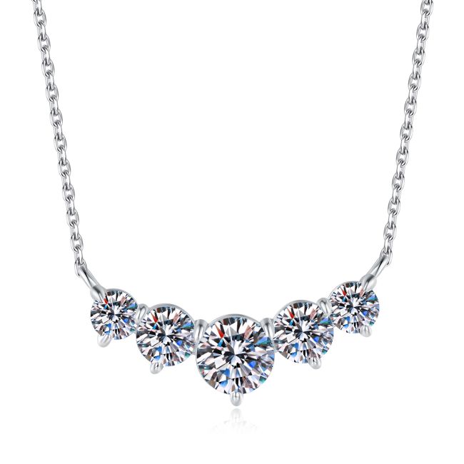 - Style: Delicate collarbone chain with graceful pendant featuring five princess-cut moissanite gems