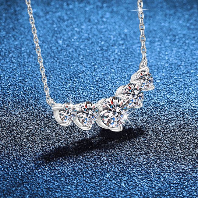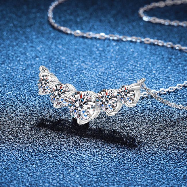 Necklace Sterling Silver Five Stone Moissanite Smile Pendant Collarbone Chain