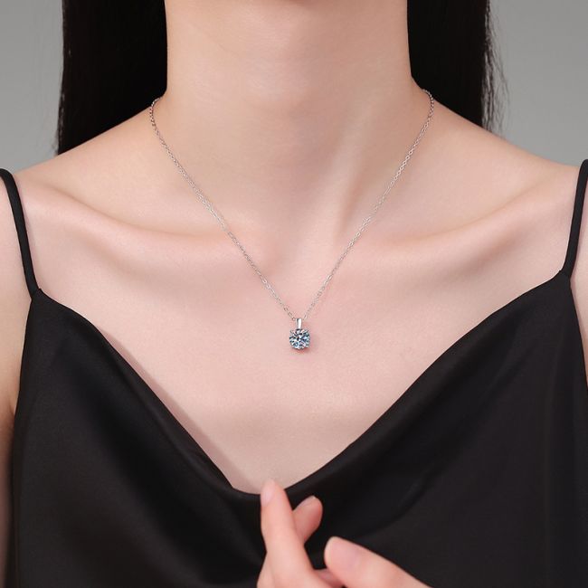 Necklace Sterling Silver Four-Prong Moissanite Pendant Minimalist Collarbone Chain