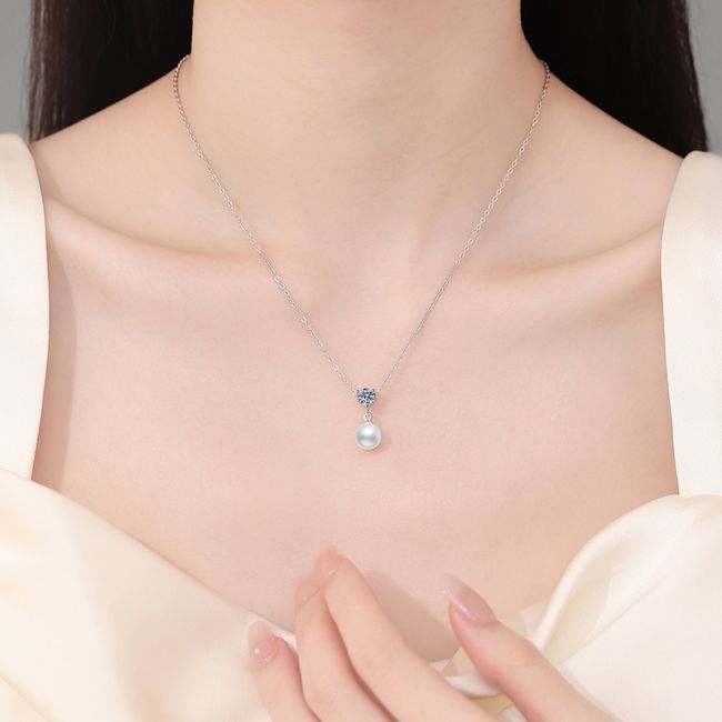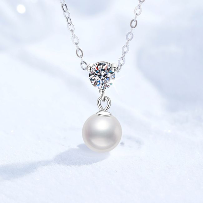 - Design: Elegant drop pendant design with sparkling moissanite positioned above lustrous pearl