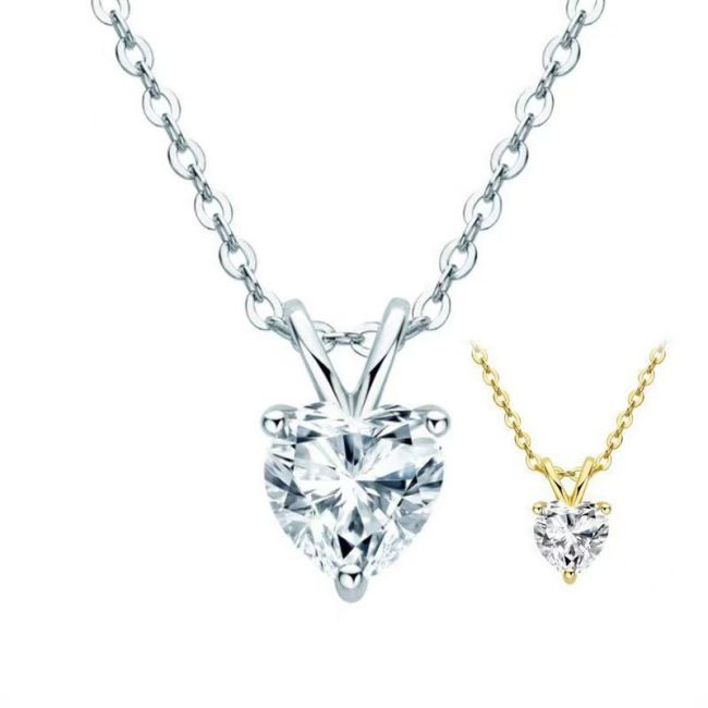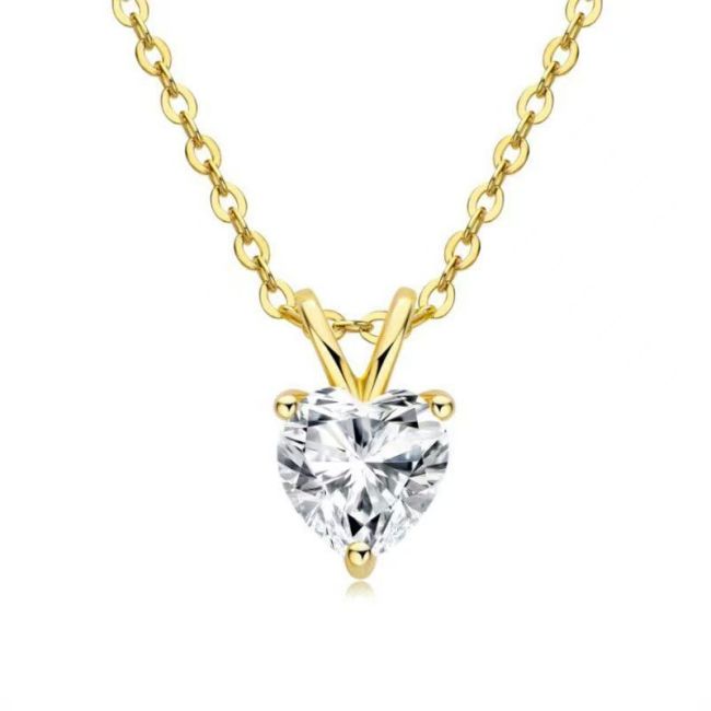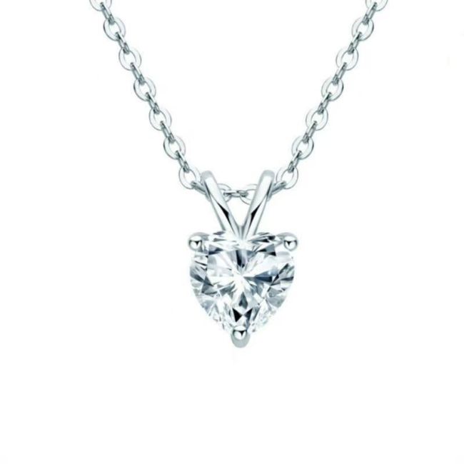 Necklace Sterling Silver Heart Moissanite Three Prong Collarbone Chain Minimalist Fashion Jewelry