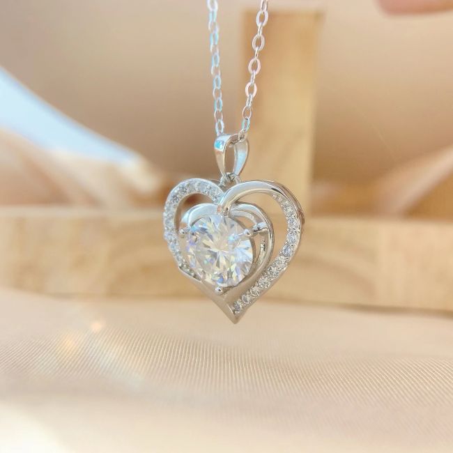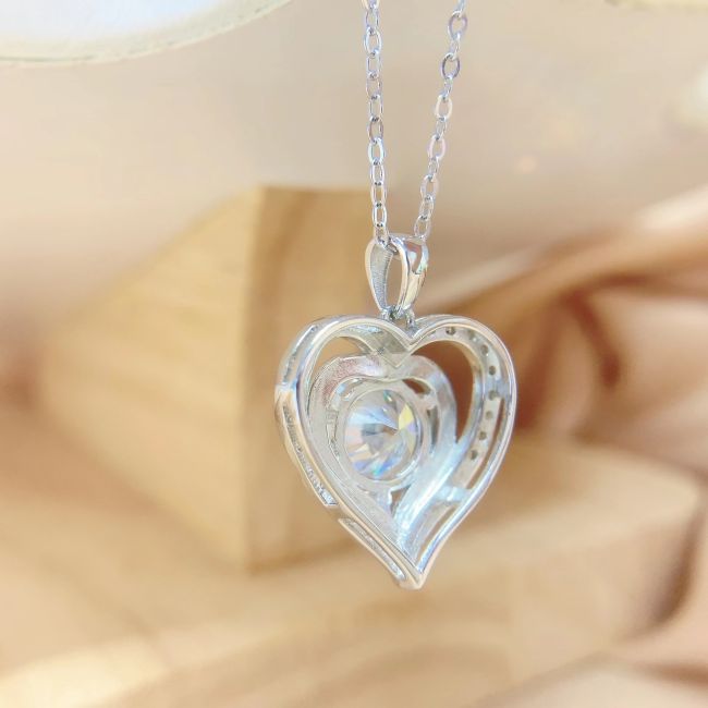 Necklace Sterling Silver Heart Pendant with Moissanite Stones Delicate Collarbone Chain