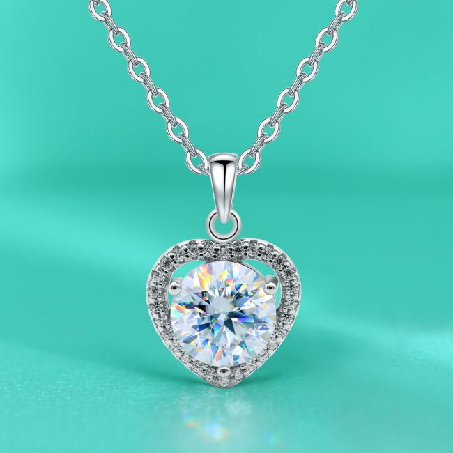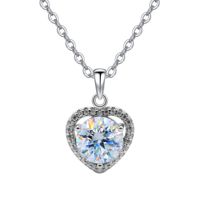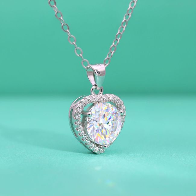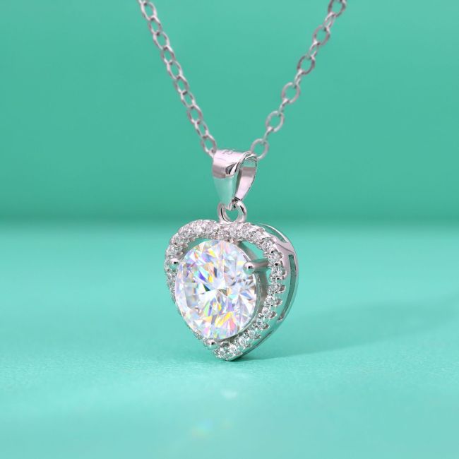 Necklace Sterling Silver Heart Pendant with Moissanite Micro Pave Setting