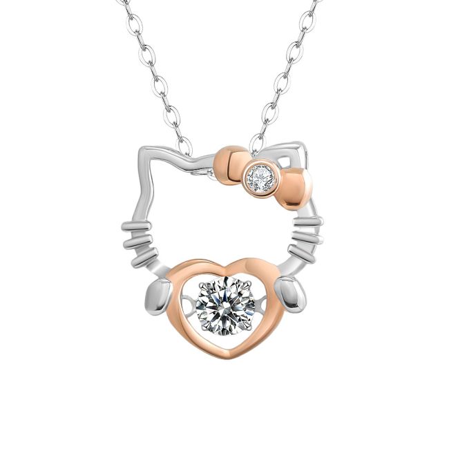 Necklace Sterling Silver Heart Shaped Kitty Cat Pendant Delicate Collarbone Chain