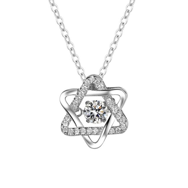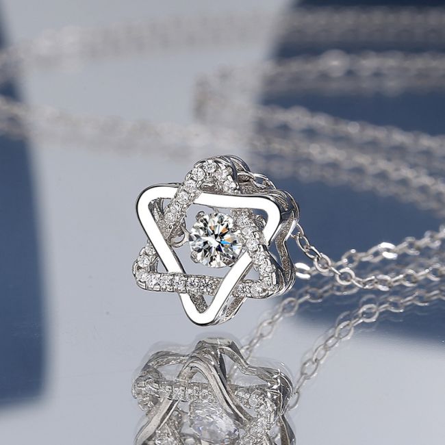 Necklace Sterling Silver Hexagram Star Pendant with Moissanite Stone Minimalist Luxury Design