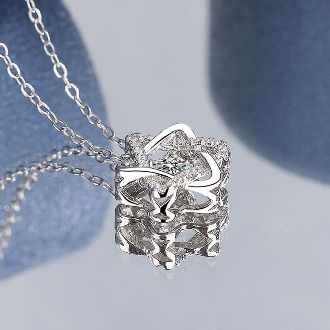 Necklace 925 Sterling Silver Moissanite Mini Dancing Light Pendant Chain Luxury Gift