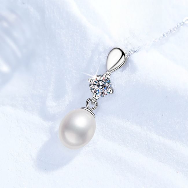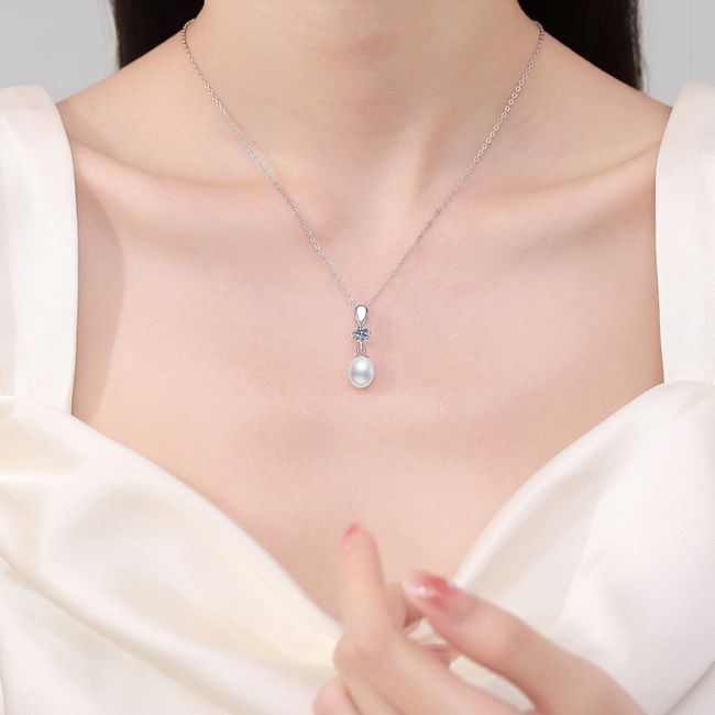 - Design: Elegant drop pendant design with teardrop-shaped silver cap, sparkling moissanite center, and pearl drop