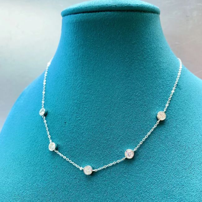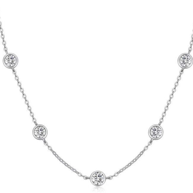 Necklace Sterling Silver Moissanite Bubble Collarbone Chain Minimalist Starry Design