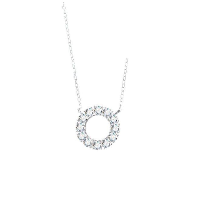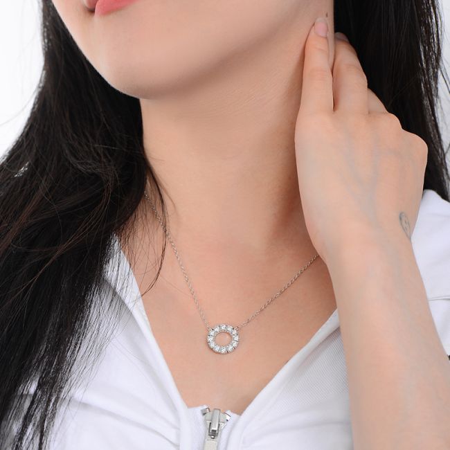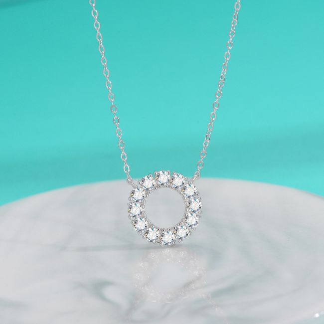 Necklace Sterling Silver Moissanite Circle Pendant with Pavé Setting