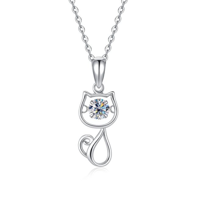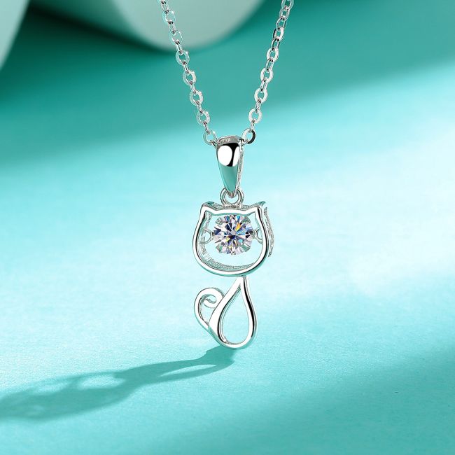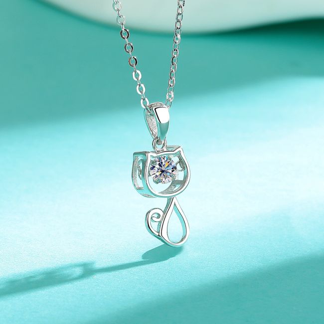 Necklace Sterling Silver Moissanite Cute Cat Pendant Fashion Versatile Jewelry Gift