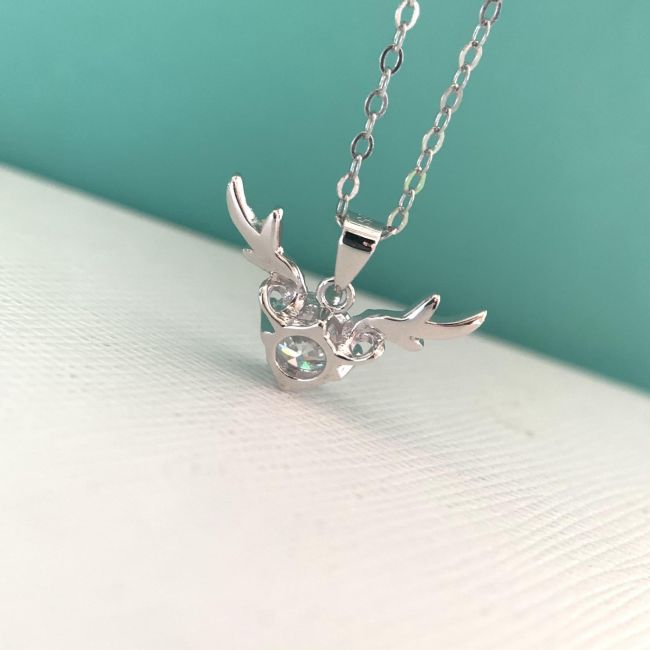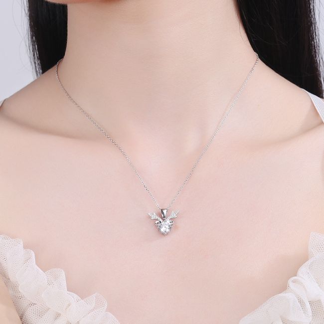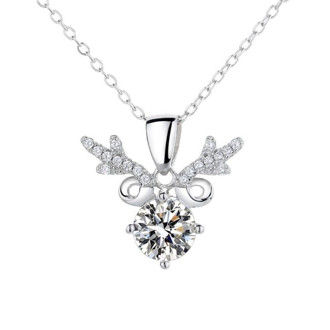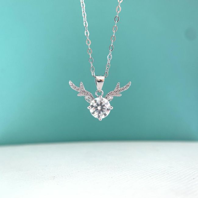 Necklace Sterling Silver Moissanite Deer Antler Pendant Delicate Collarbone Chain