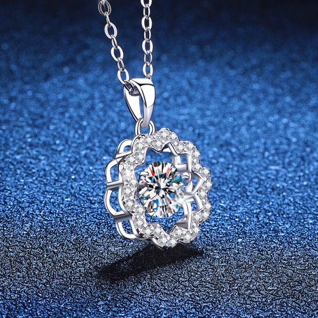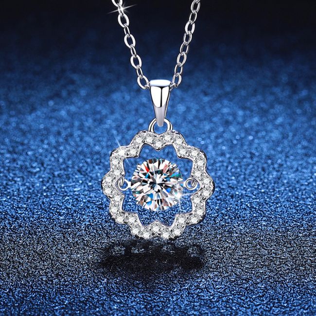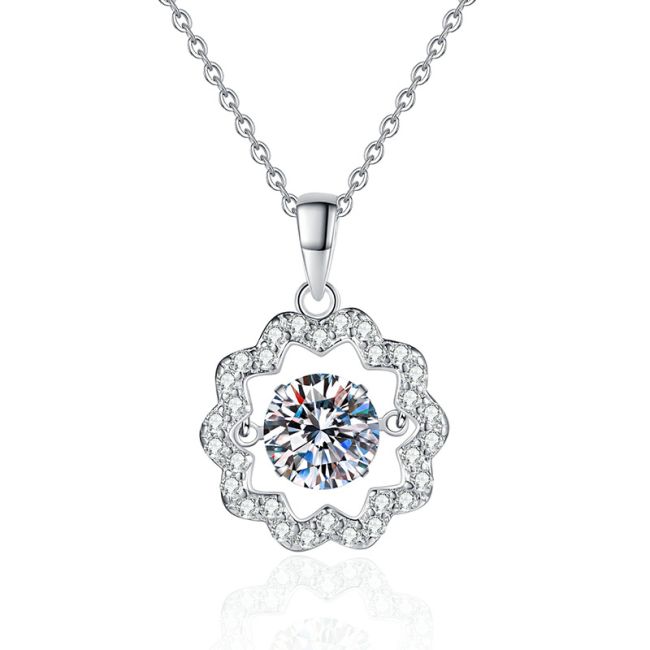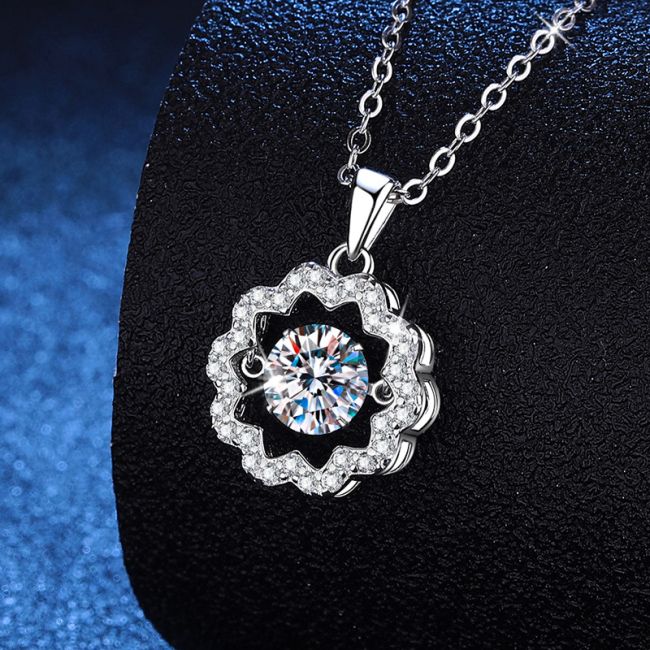 Necklace Sterling Silver Moissanite Flower Pendant with Dancing Stone Design