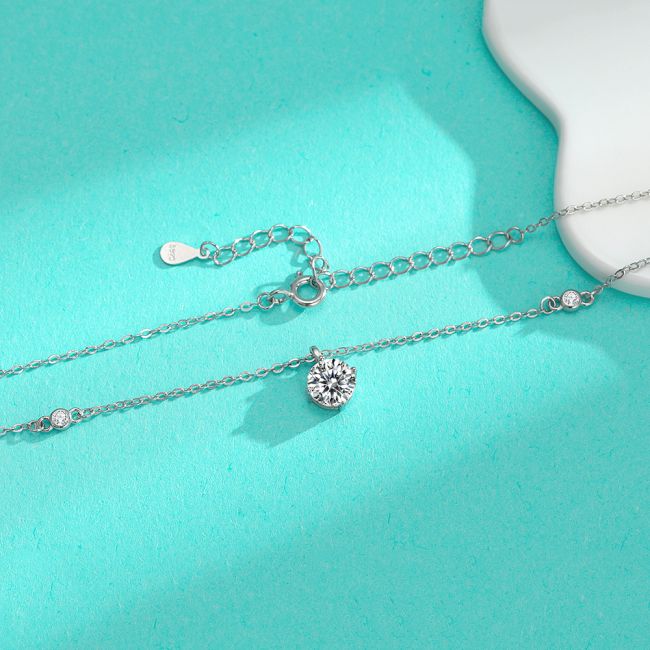 Necklace Sterling Silver 2 Carat Moissanite Round Pendant Delicate Box Chain Collarbone Necklace