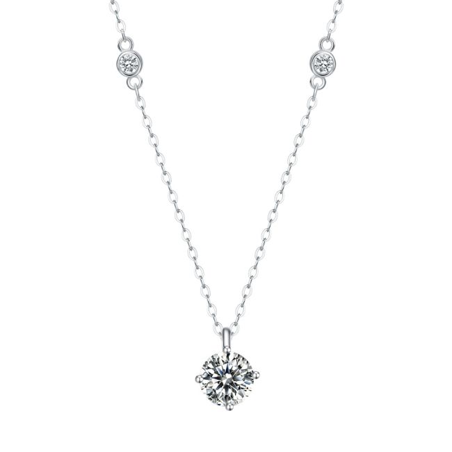 Necklace Sterling Silver Moissanite Four Prong Solitaire Pendant Delicate Collarbone Chain