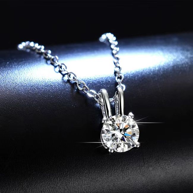 Necklace Sterling Silver Moissanite Four Prong Solitaire Pendant Minimalist Delicate Collarbone Chain