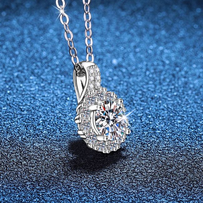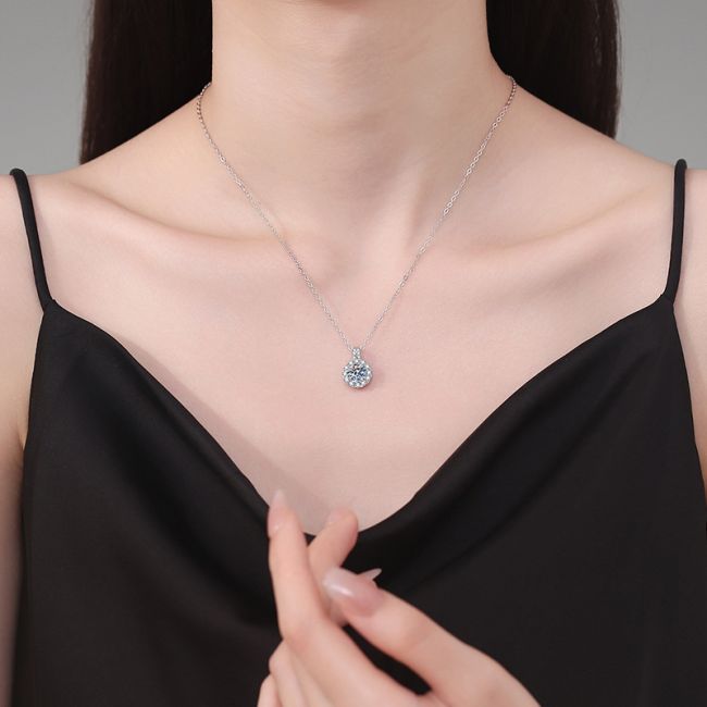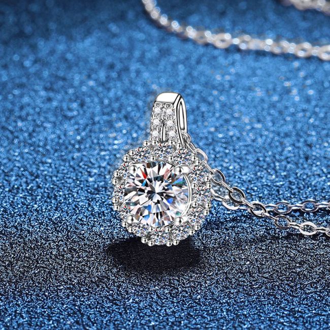 Necklace Sterling Silver Moissanite Pendant with Brilliant Round Cut Halo Design