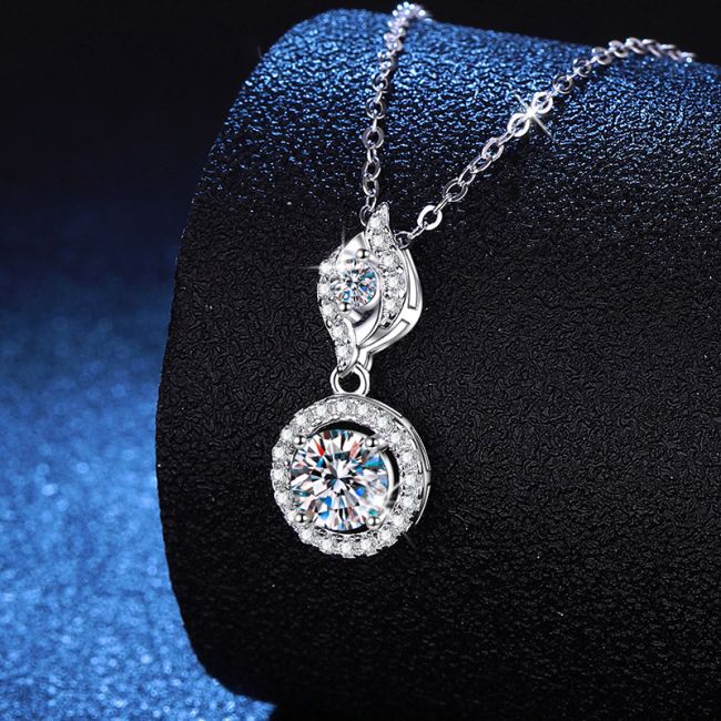 Necklace Sterling Silver Moissanite Pendant with Halo Design and Elegant Twisted Link