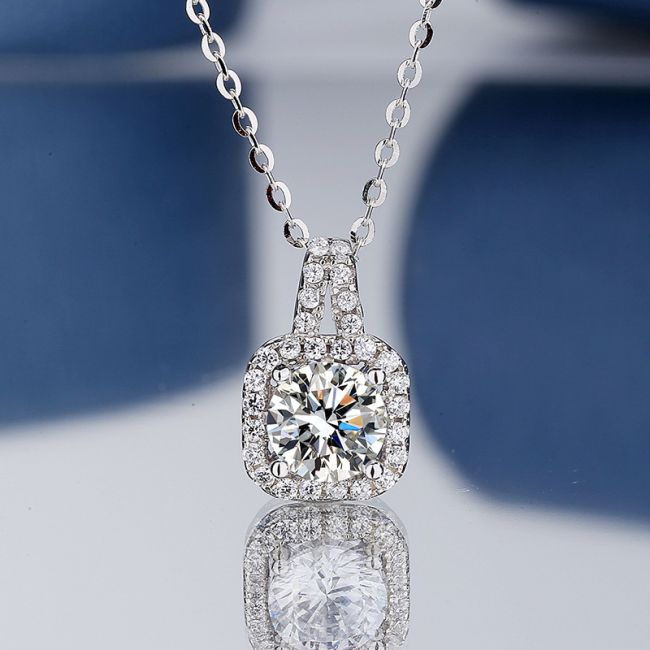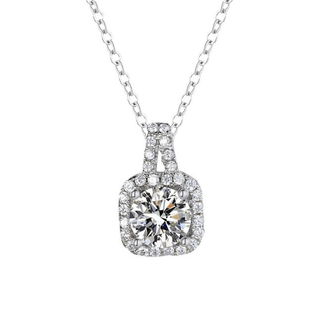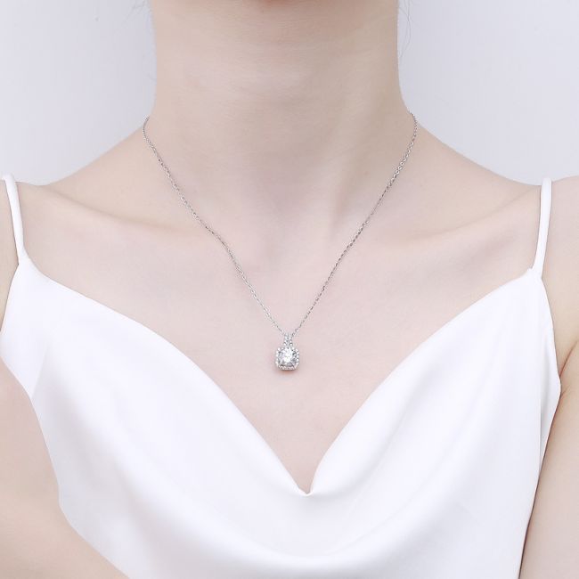 Necklace Sterling Silver Moissanite Square Pendant Four Prong Setting Delicate Collarbone Chain