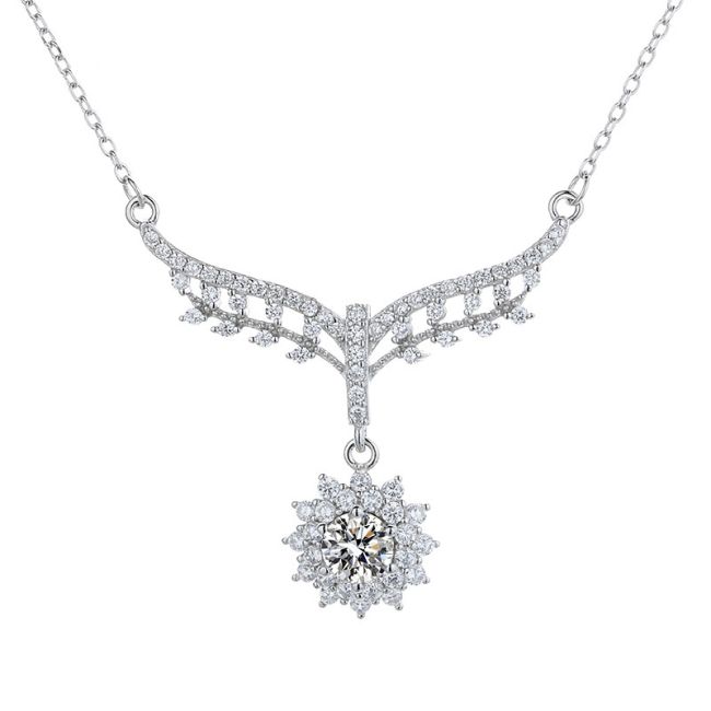 Necklace Sterling Silver Moissanite Sunflower Fishtail Pendant Delicate Collarbone Chain