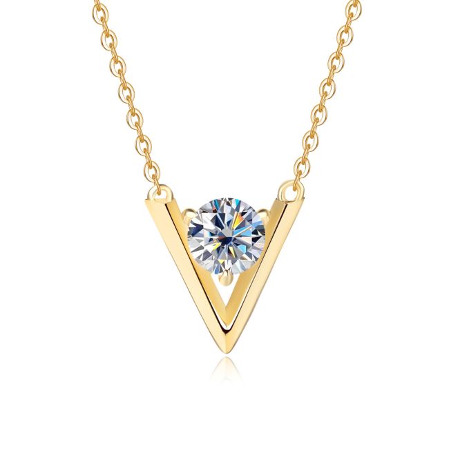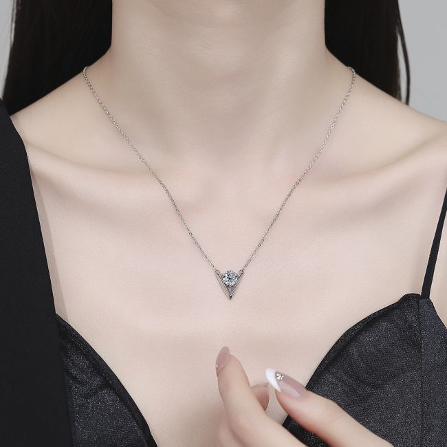 Necklace Sterling Silver Moissanite V-Shaped Minimalist Collarbone Chain