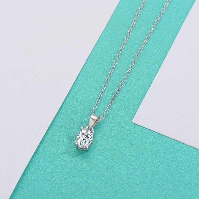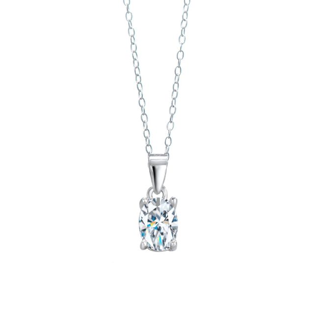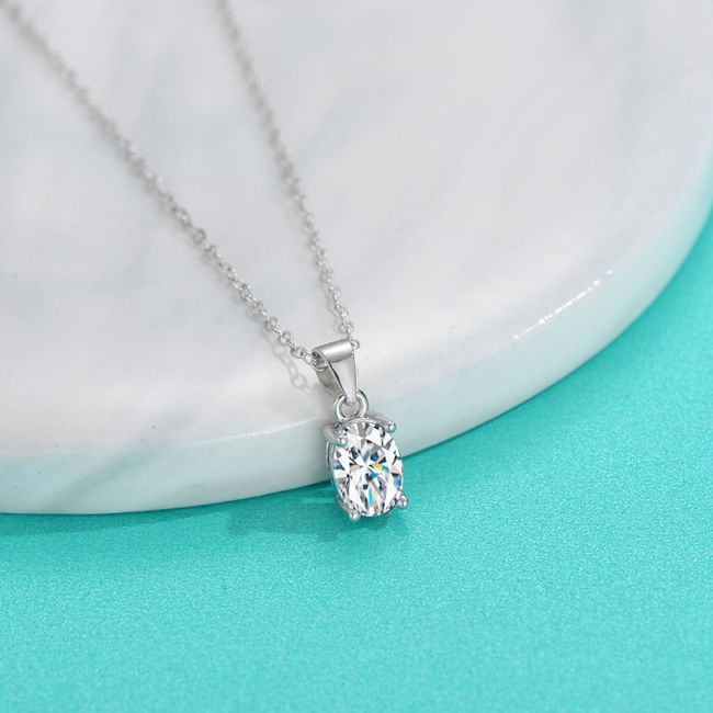 Necklace Sterling Silver Oval Moissanite Pendant Four Prong Solitaire Collarbone Chain