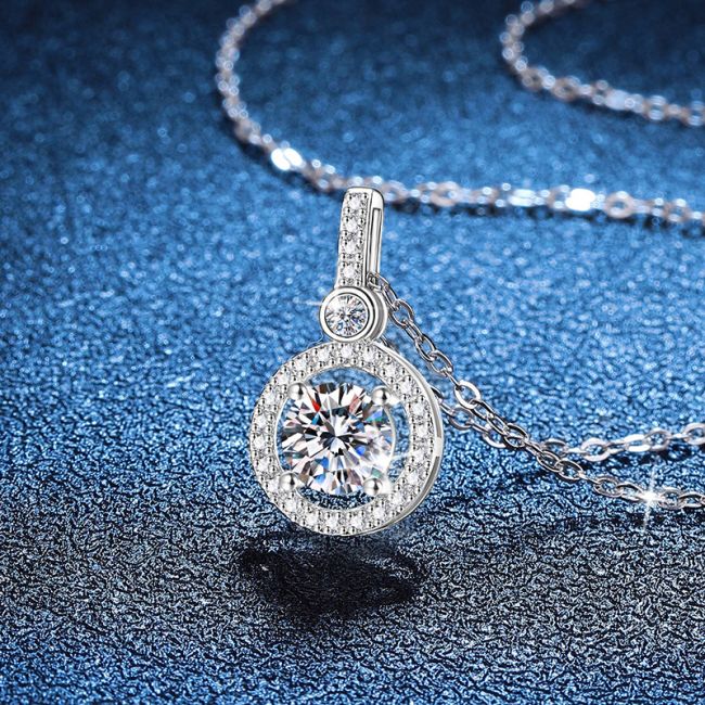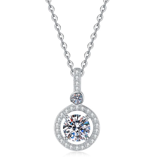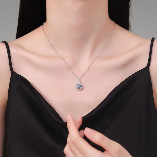 Necklace Sterling Silver Round Halo Moissanite Pendant with Delicate Chain