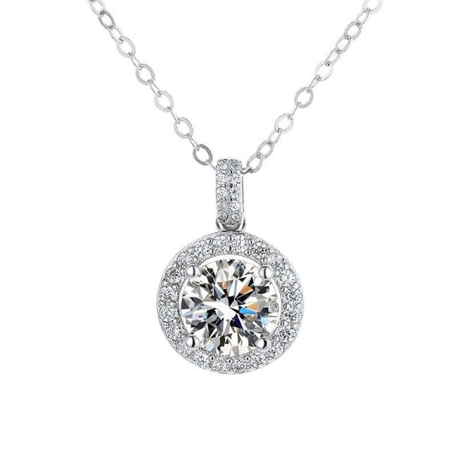 Necklace Sterling Silver Round Solitaire Pendant with Moissanite or Cubic Zirconia Stone