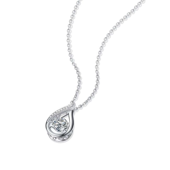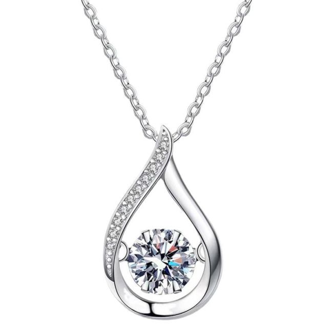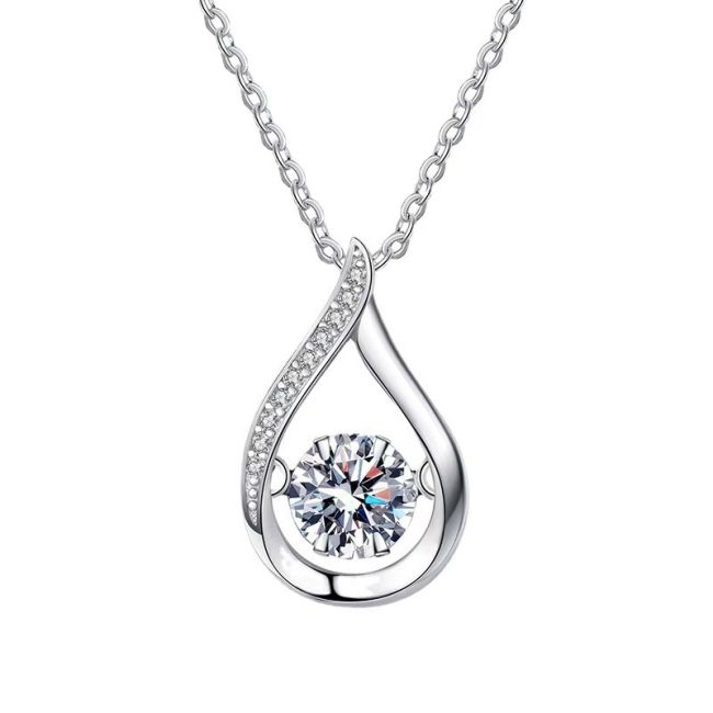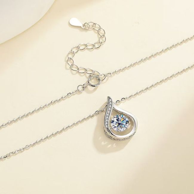 Necklace Sterling Silver S925 Teardrop Pendant with Moissanite Stone Elegant Luxury Design