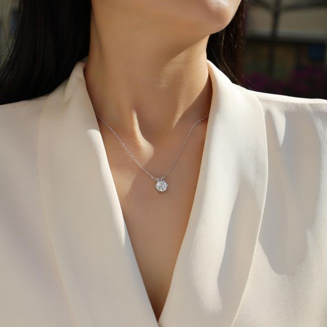 Necklace Sterling Silver Six-Prong Moissanite Delicate Collarbone Chain with Box Link