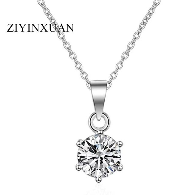 Necklace Sterling Silver Six Prong Moissanite Solitaire Pendant Delicate Chain