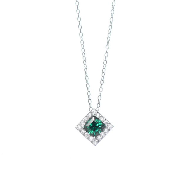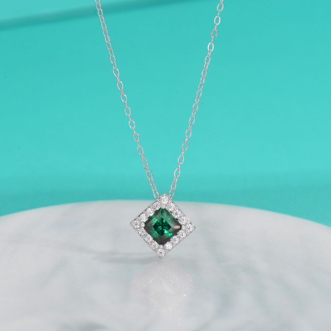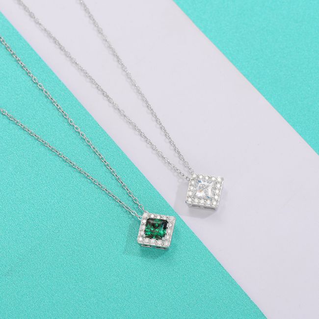 Necklace Sterling Silver Square Moissanite Emerald Cut Pendant Delicate Collarbone Chain