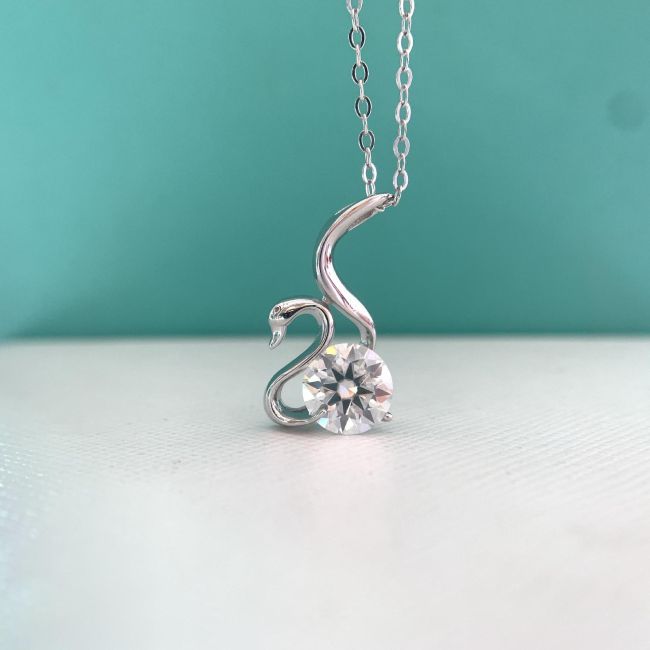 Necklace Sterling Silver Swan Pendant with 2 Carat Moissanite Stone Delicate Collarbone Chain